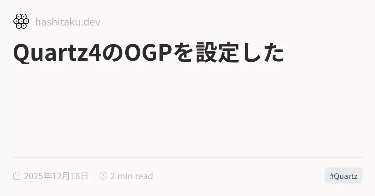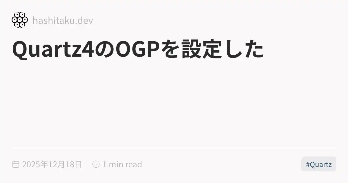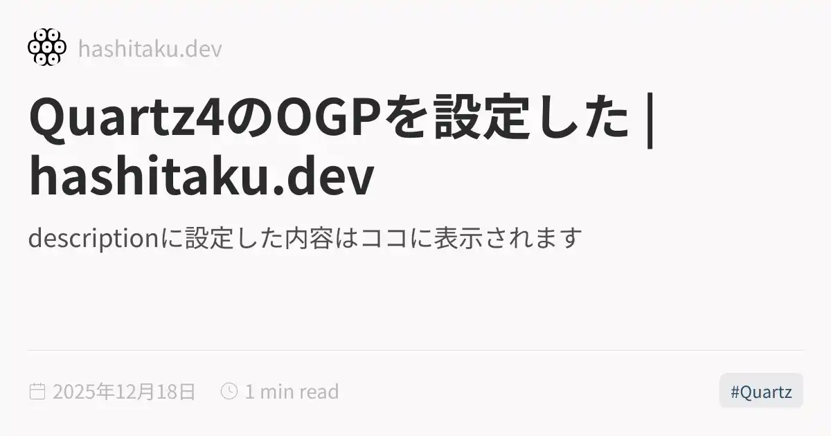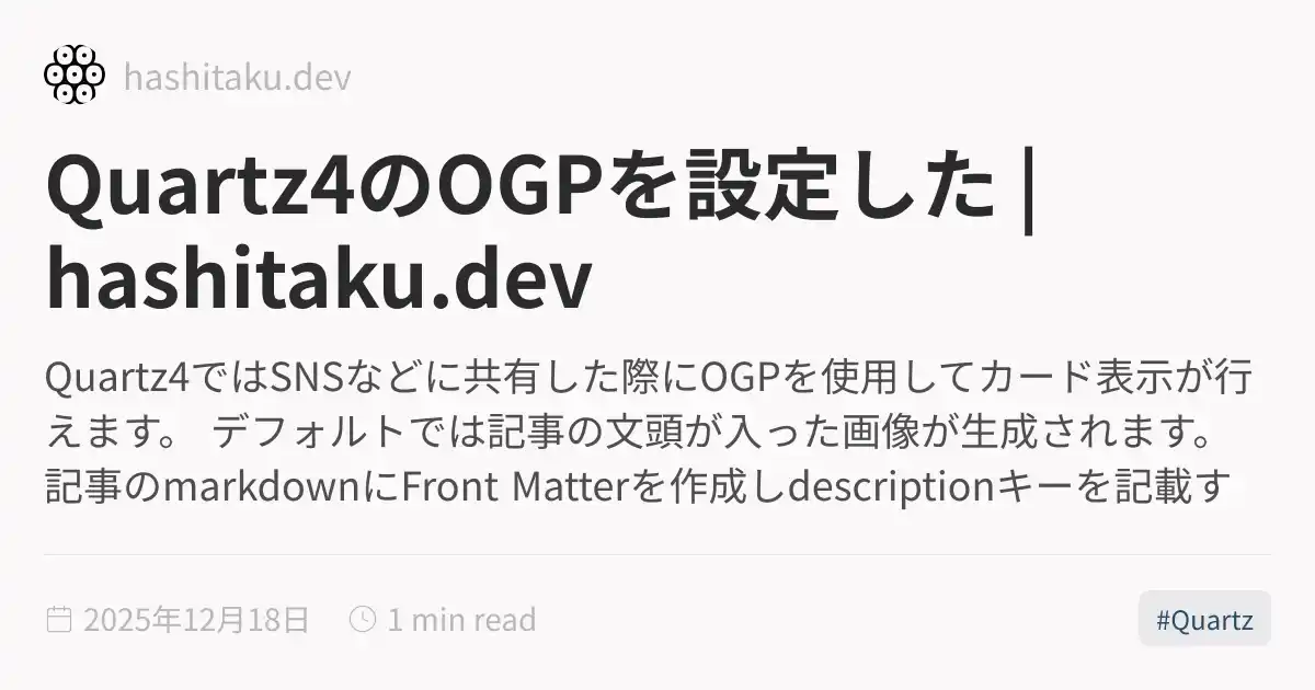 Quartz4ではSNSなどに共有した際にOGPを使用してカード表示が行えます。